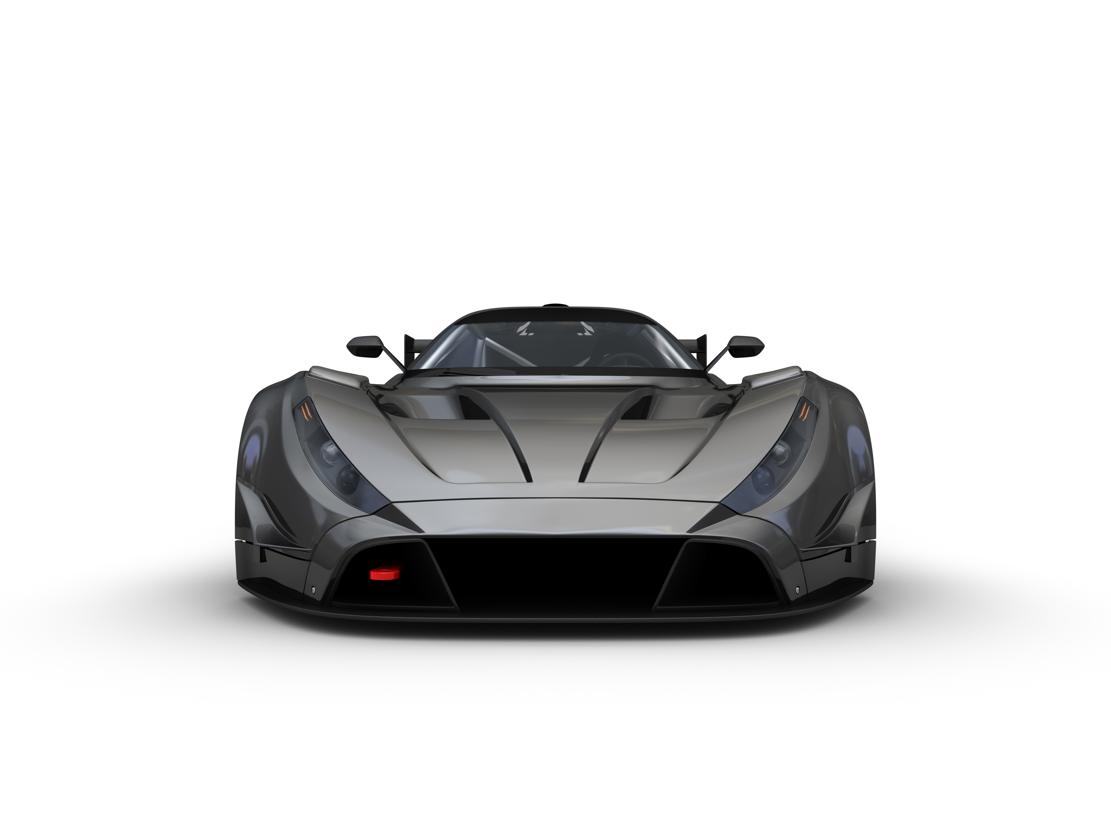 Gunmetal grey sports car, facing towards camera