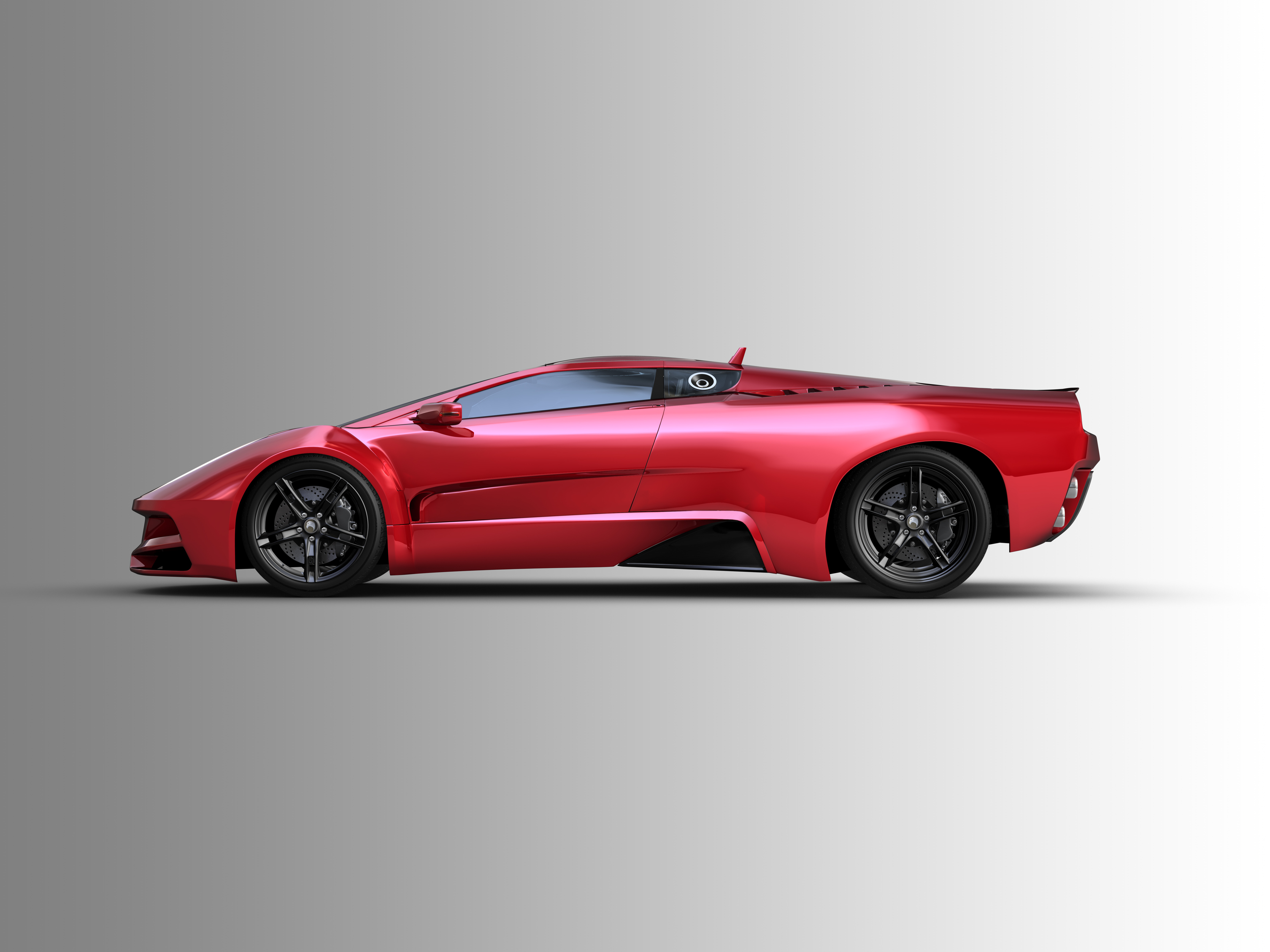 Red two door sports car on grey background